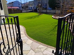 弊社で造園工事を行い、ご主人が5年間大切に育て管理していた芝生ですが、仕事の都合や芝刈りの大変さで人工芝へと作り変えました。(館林市)
