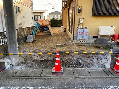 駐車場を増設したいけどスペースが無いという事でしたが、測量してみると何とか駐車できるスペースがありました。ブロック塀を解体し、排水関係を新たに直し、東京電力に電柱を細くしてもらい1台分の駐車場増設を叶えました。(大泉町)