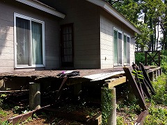朽ち果てたウッドデッキを雨風シロアリに強いアイアンウッドへや樹脂製のものへ作り変え。