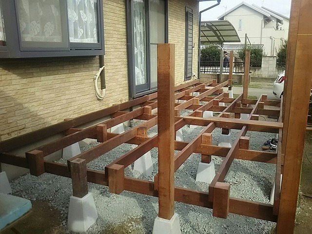 アイアンウッドを使い、頑丈且つ使い勝手の良いデッキテラスに変えていきます!!