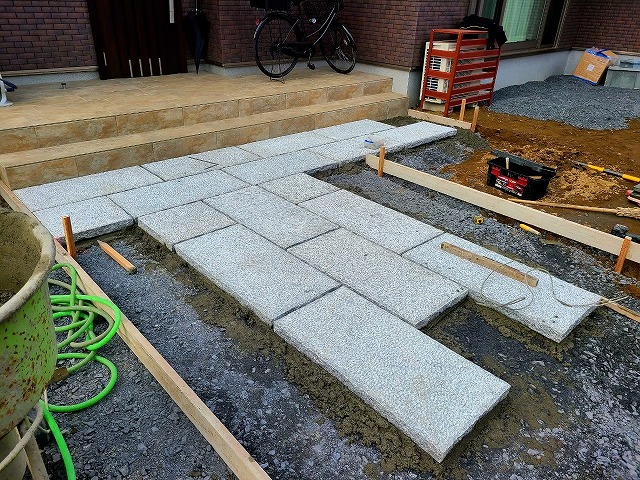 植栽スペースには御影石のピンコロで仕切りをつけます。