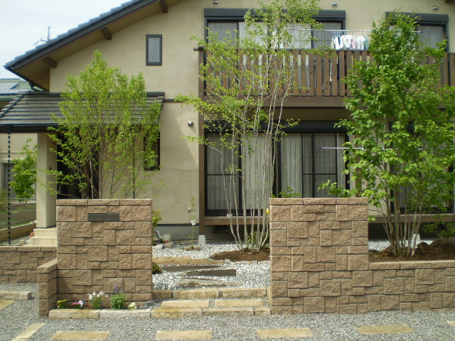 ポストや表札、土留めの為にブロックを使いましたが、いかにもブロックというデザインの物は選びませんでした。