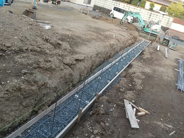 そして、庭の輪郭となるブロックの基礎を作っていきます。