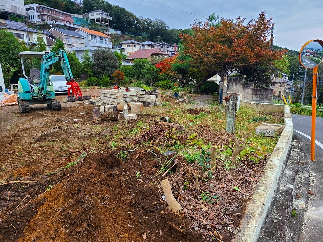 建物解体→庭の解体→土留のやり変え→建物建築→庭造りの順で行います。