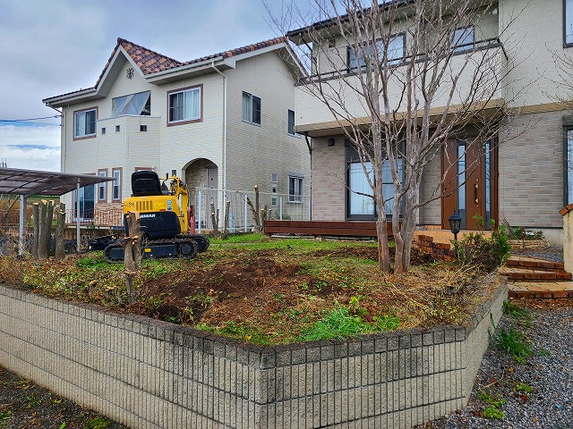 今季はワンちゃんが庭中を走り回れるようなクローズ外構へ変身させていきます。