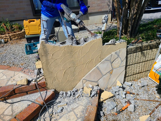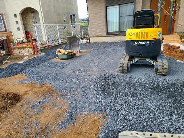 植木を抜き緩んだ下地に砕石を入れて・・・これでもか!