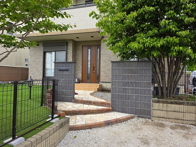 扇状に塗られた可愛いデザイン門柱でしたが・・・
