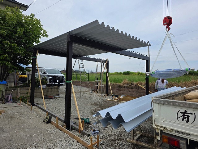 このカーポートは庭造り後ホームセンターにて施工したものですが・・・