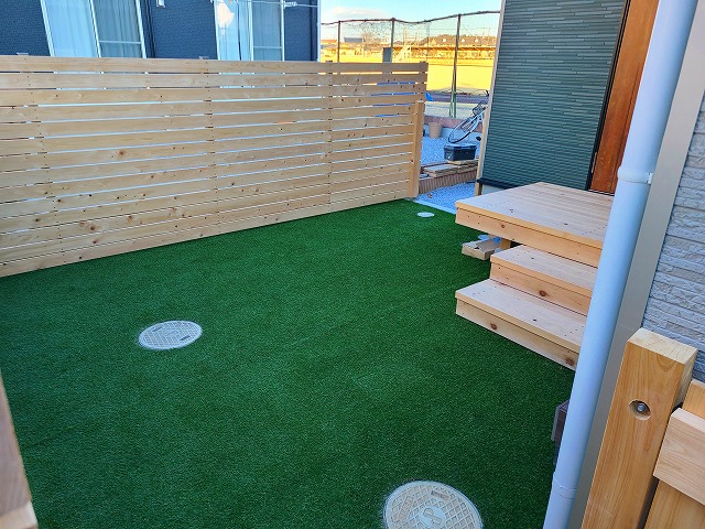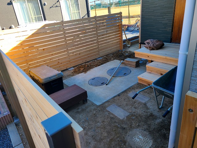 工務店さんによって増築・ウッドフェンス・デッキの施工が終わり