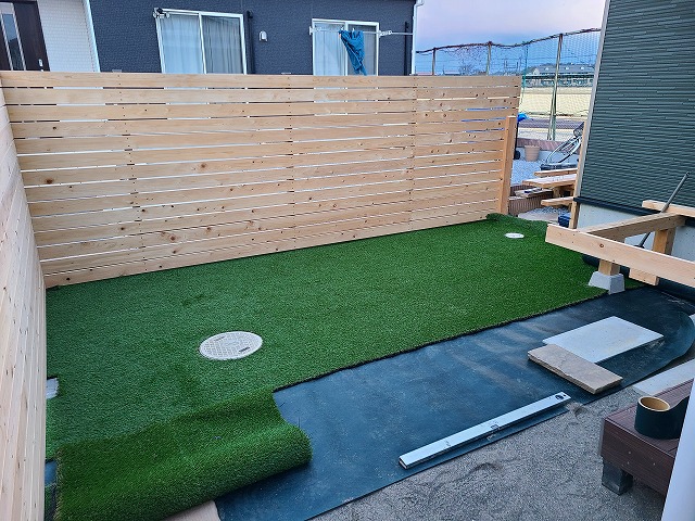 一度外させて頂き、この下にも人工芝を施工して参ります。