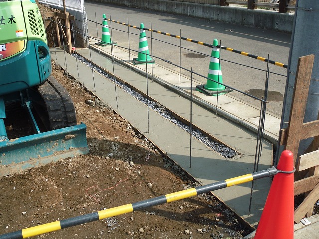 砂利で仕上げてあった駐車場をコンクリートへ変えていきます。