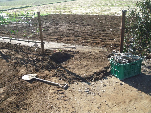 かなり土が盛ってあり、一輪車を走らせると土が崩れると言う事で。