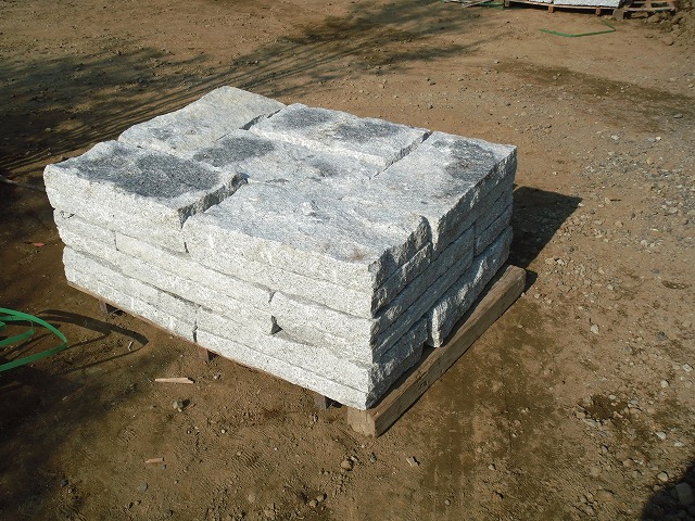翌朝敷き詰めた御影石にアクセントを付けていきます。