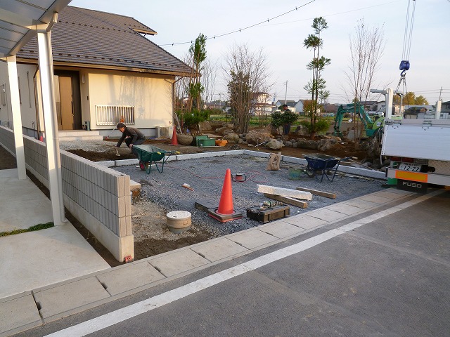 今回の庭造りに際し、一番の問題。それは施工前の画像で解りますが宅盤レベルに対して庭のレベルが思いっきり低い(^^;)ご覧の通り雨が降ると湖になってしまい、車を駐めるのも躊躇してしまう感じです。