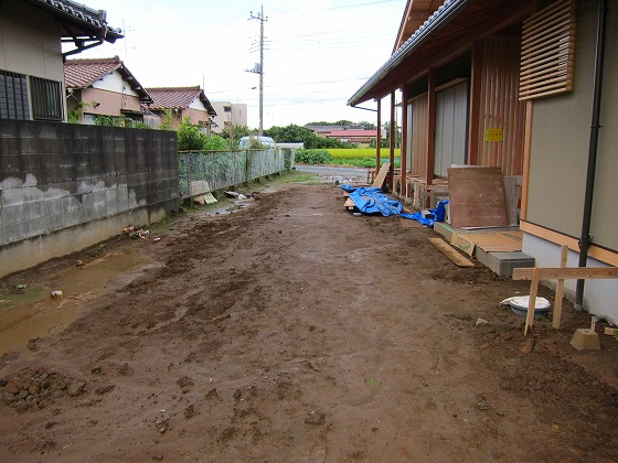 いかに造りながら変形の土地を活かし、建物を引き立たせ、使い勝手の良い庭にしていくかが今回の命題となりました!!