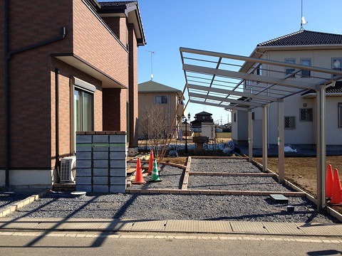 そして、石張りを仕上げてカーポートの屋根を取り付け。