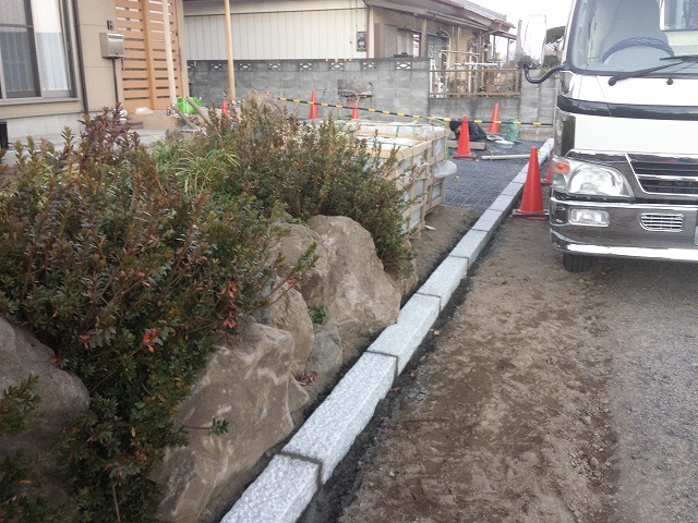 御影石の縁石を用い、和風の家に負けないビシッとした見切りに!!