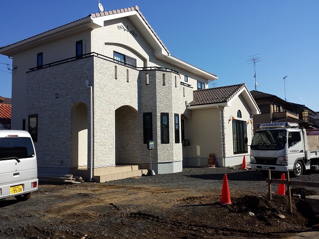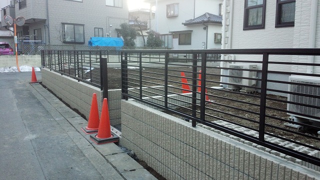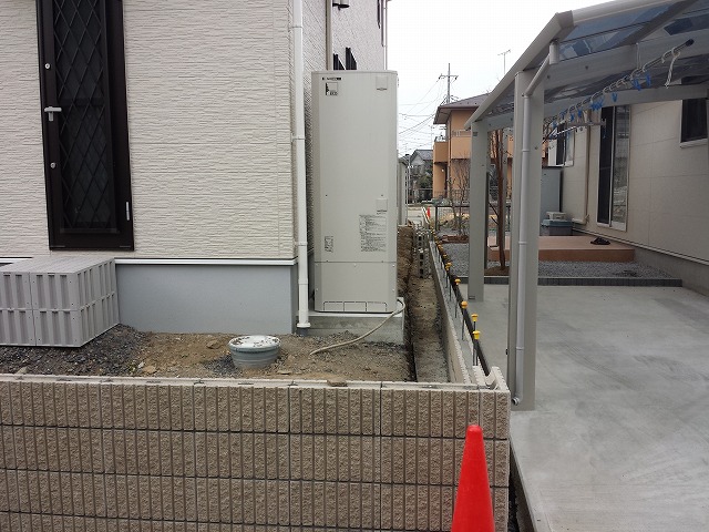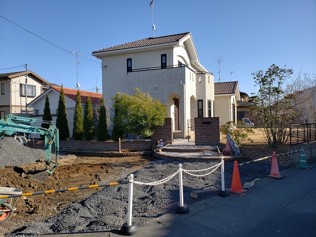 アプローチ部分のレンガも並べればアプローチも始まります。