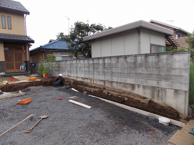 お隣さんとの境界の基礎が崩れないように配慮していきます。