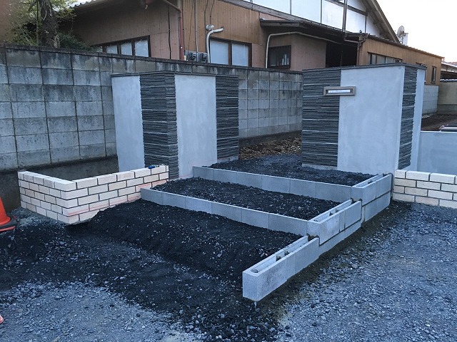 ブロックの天端にはノヴェルボーダーと同じ材質の石材をチョイス!!