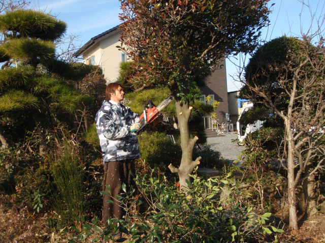 今まで大きく育った植木達に対しても、せめてでも良く切れるチェンソーで切ってあげます。