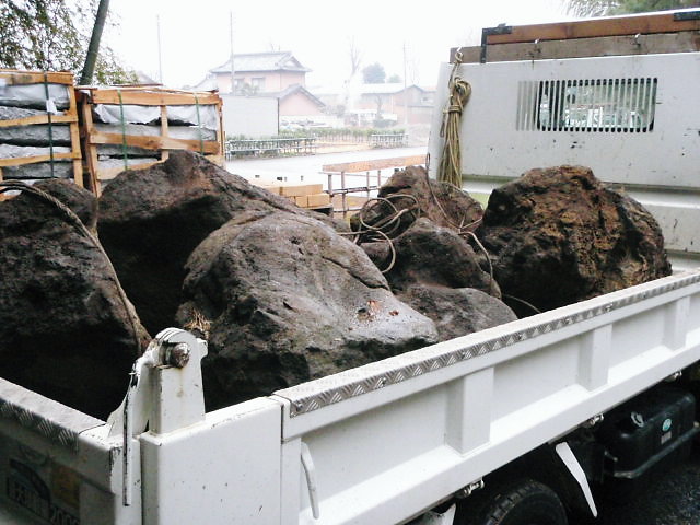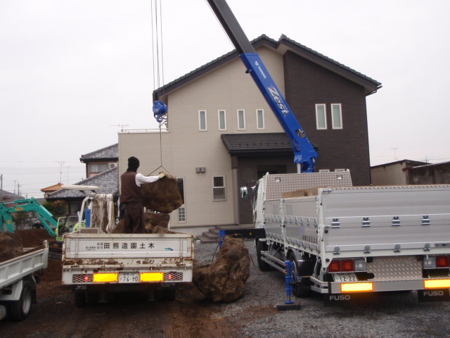 「景石運び込み開始!!」