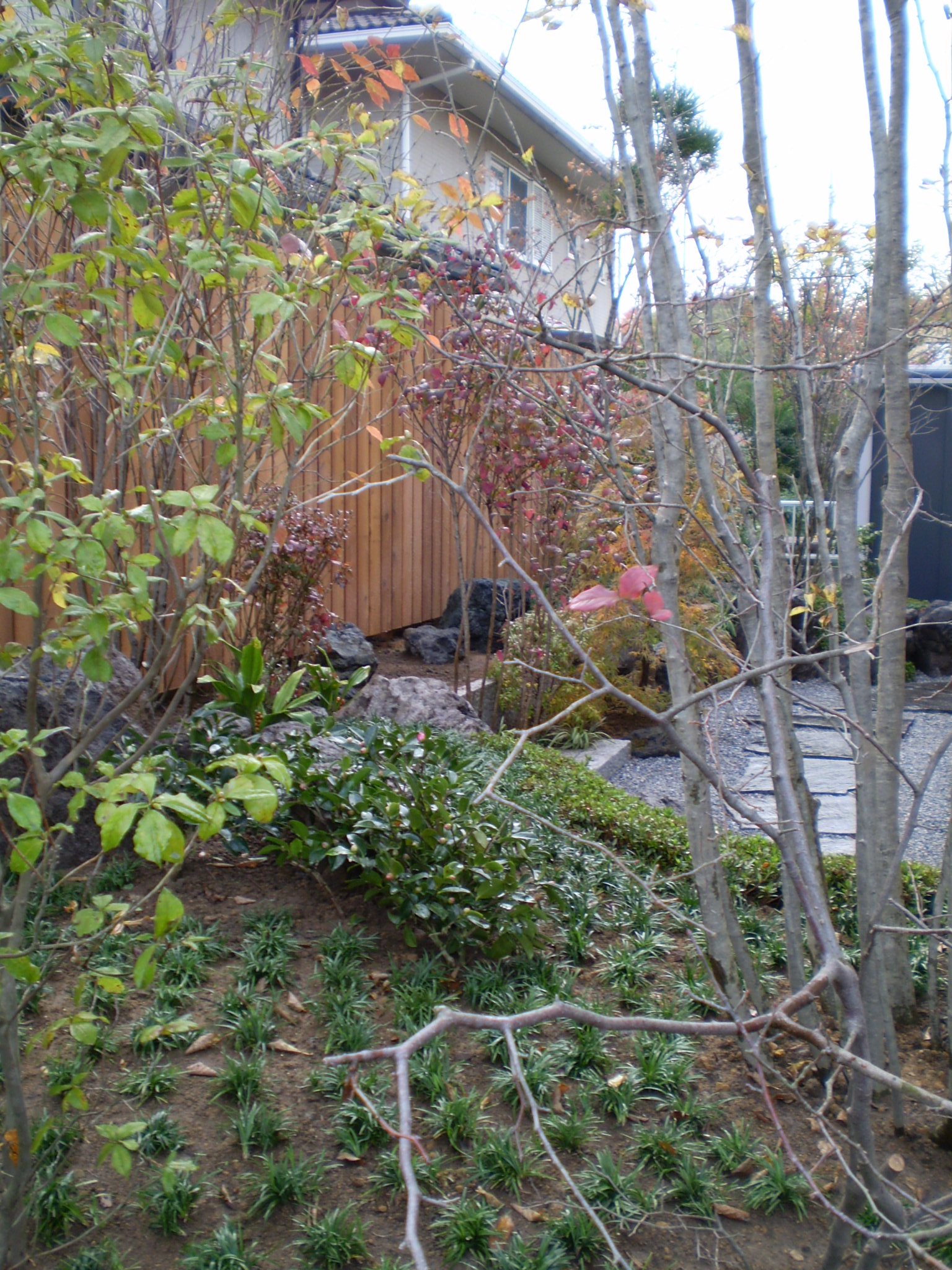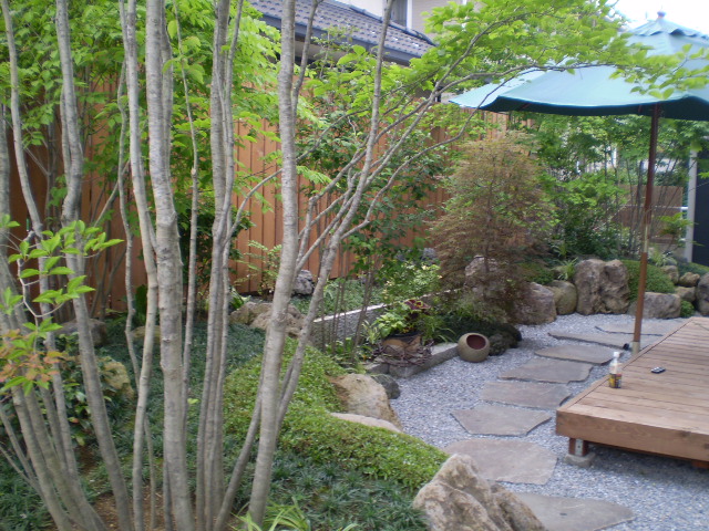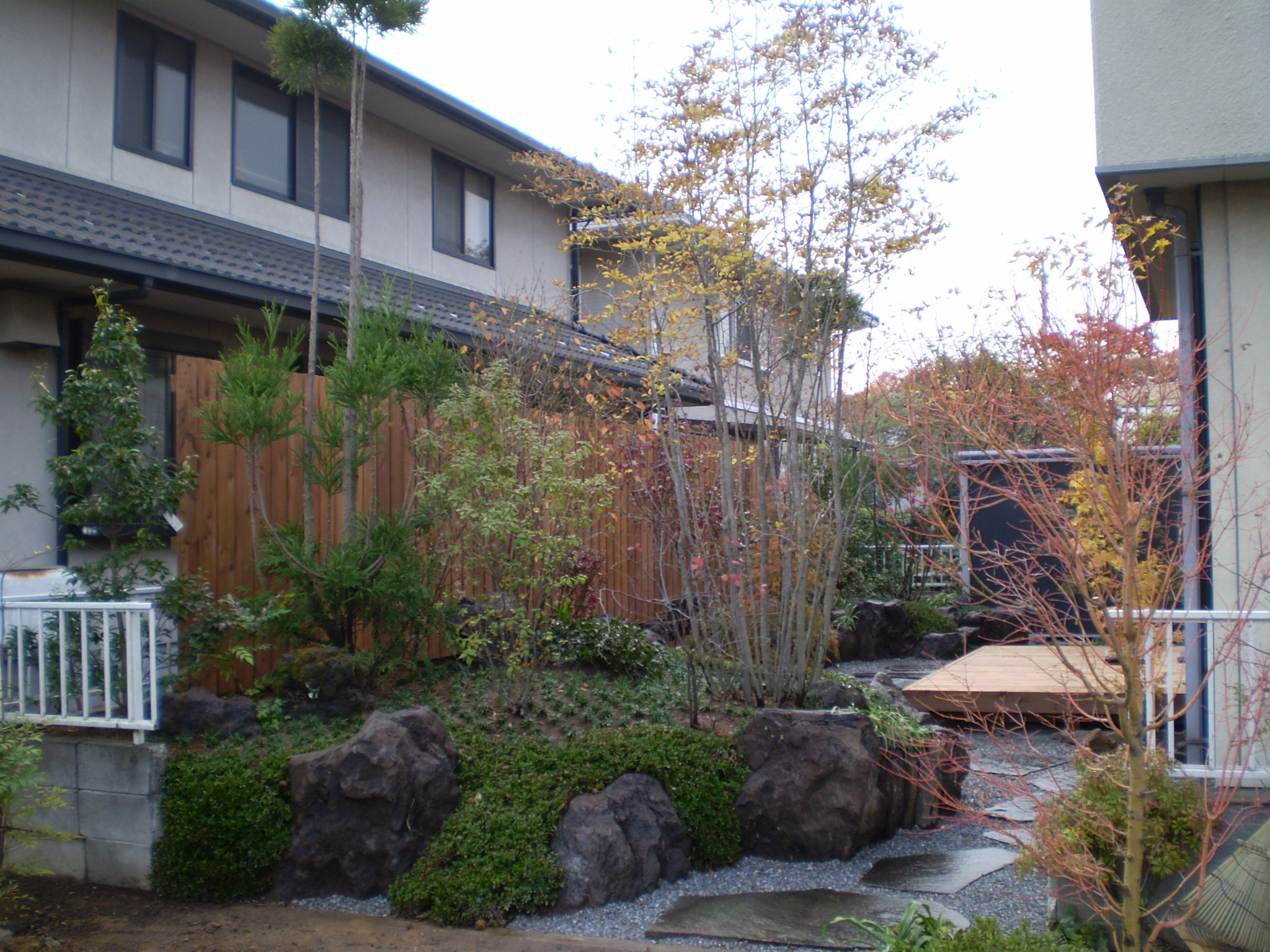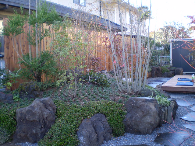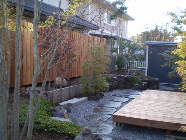 大泉町で行った庭園リフォーム工事の施工例。「モダンな和風」「一歩前に出て庭を楽しめる動線」「デッキ上で緑に包まれる体験」を軸に、舞台のようなウッドデッキと飾れるウッドフェンス、石組み・植栽までを一から再構成しました。撤去〜整地〜給水〜材料搬入〜石組み〜植栽〜仕上げ、さらに完成後の四季の変化まで写真付きで紹介します。